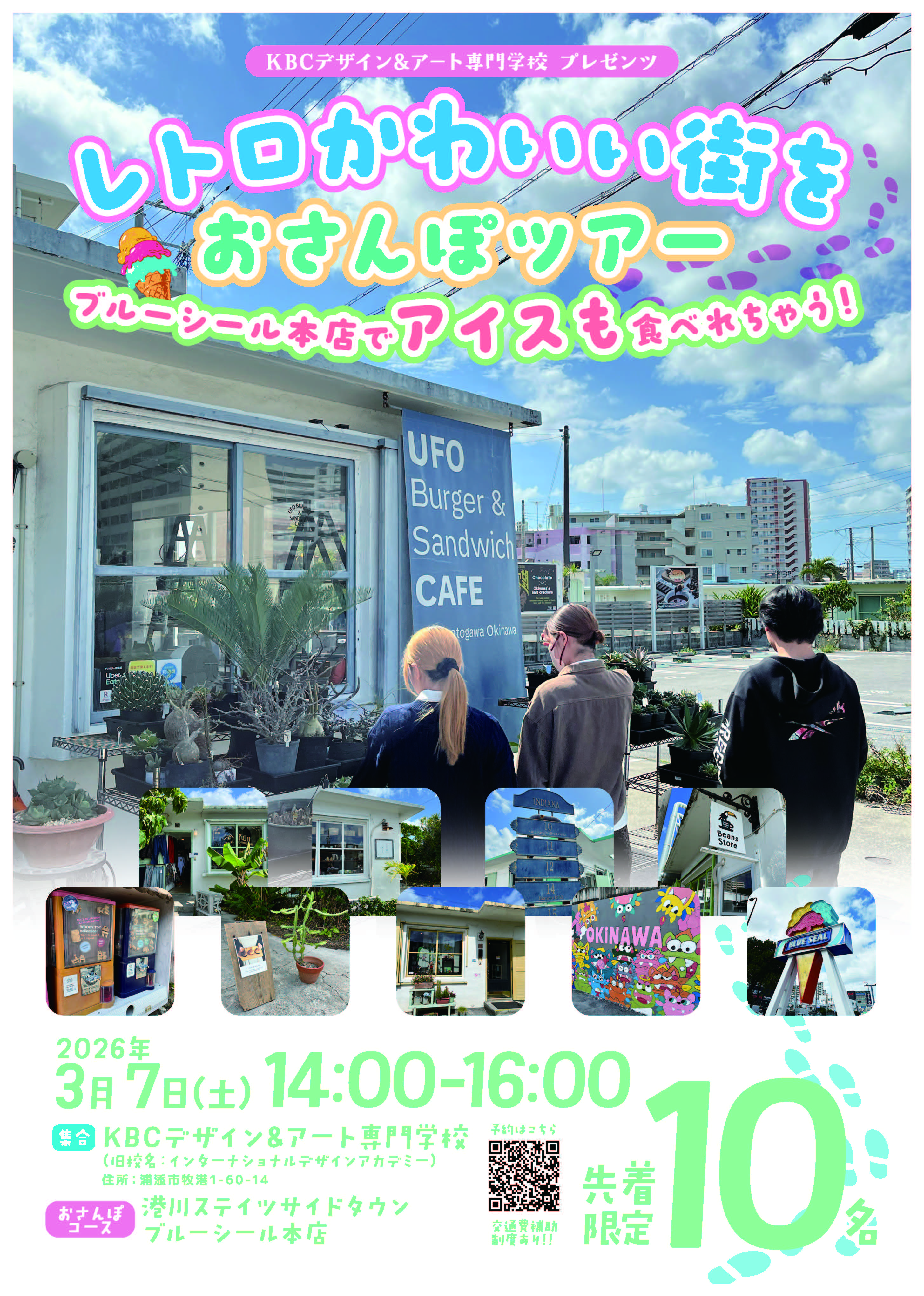 2026.02.25 \限定10名/3月7日(土)おさんぽツアー開催☆ 高校1・2年生向けイベントです♪ ■3/7(土) 14:00~16:00 ※予約制 校舎を出て、レトロかわいい街をのぞいてみよう(^^)/ ☆★☆★ オープンキャンパス参加特典 ★☆★☆ ■高校正門で待ち合わせする無料送迎もやっています。(交通費補助対象外) 希望者は3/5(木)17:00までに予約してね! ▼予約申込はコチラ▼ その他、お問い合わせは公式LINEから☆