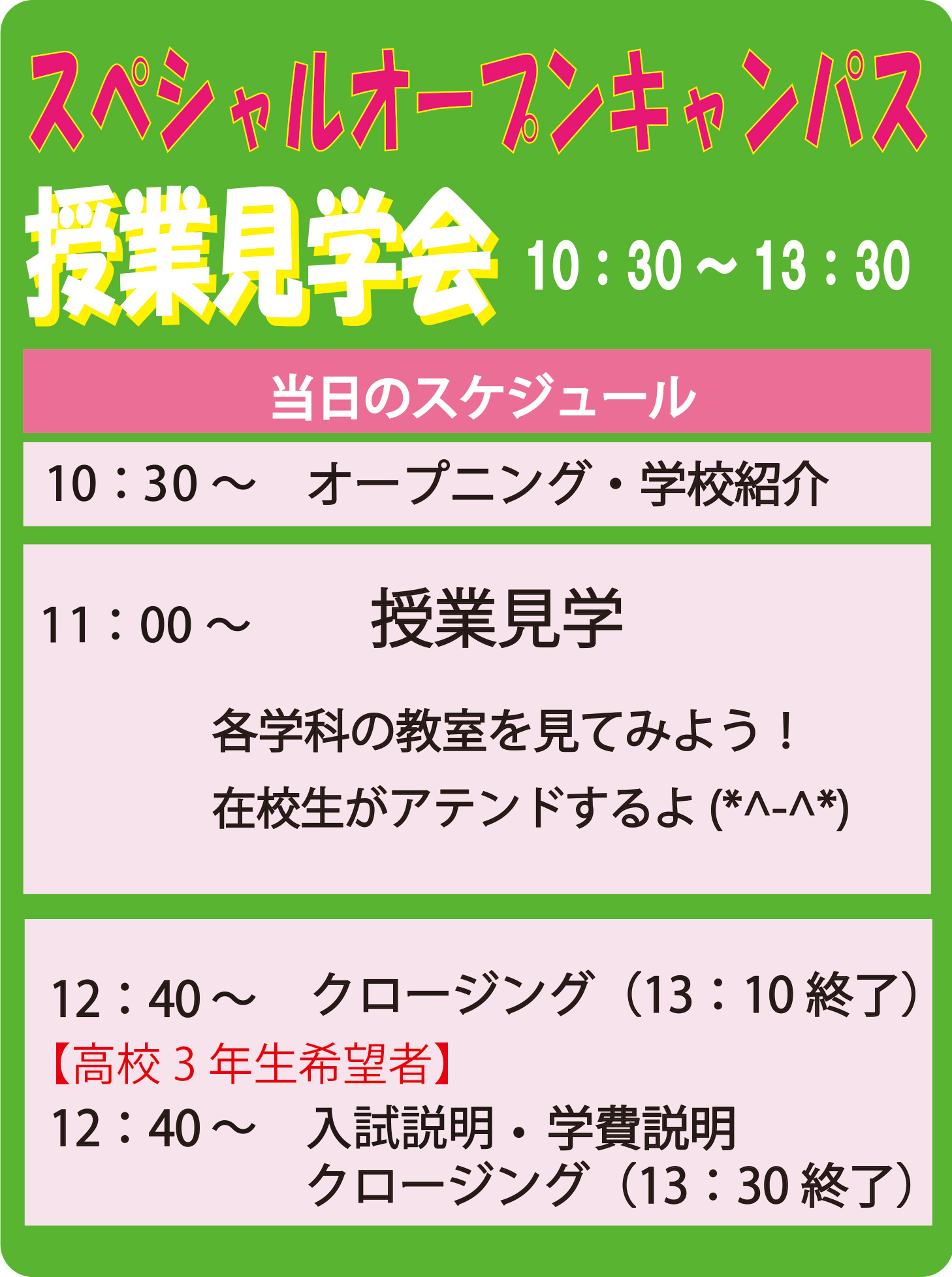 4/25(土)年1回の授業見学スペシャルオープンキャンパス☆